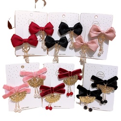 ที่คาดผมแฟชั่นสำหรับเด็กประดับโบว์ผ้ากำมะหยี่อุปกรณ์ตกแต่งผมสไตล์ยุโรปสำหรับงานปาร์ตี้